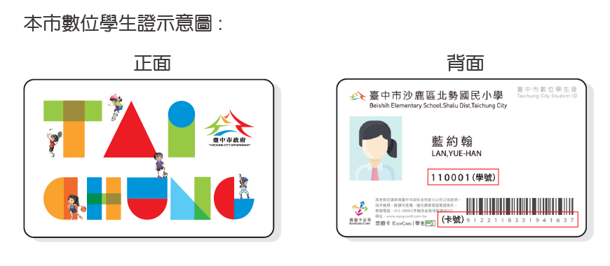 國小學生憑「臺中市」數位學生證兌領,數位學生證領卡、失卡、補發方式說明如下: